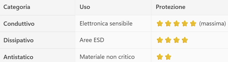 Possono essere: Conduttivi, Dissipativi o Antistatici