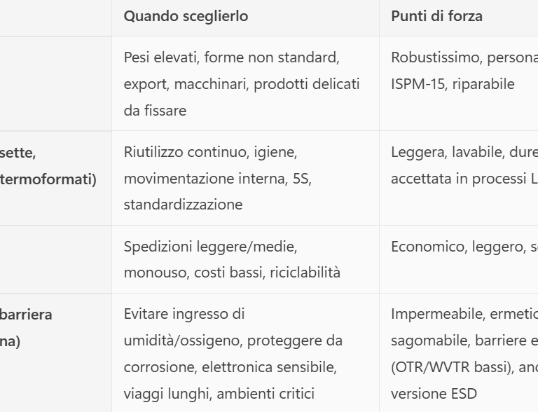 Scegli il legno quando ti serve robustezza, portata, modularità, un imballo fuori standard o per export.